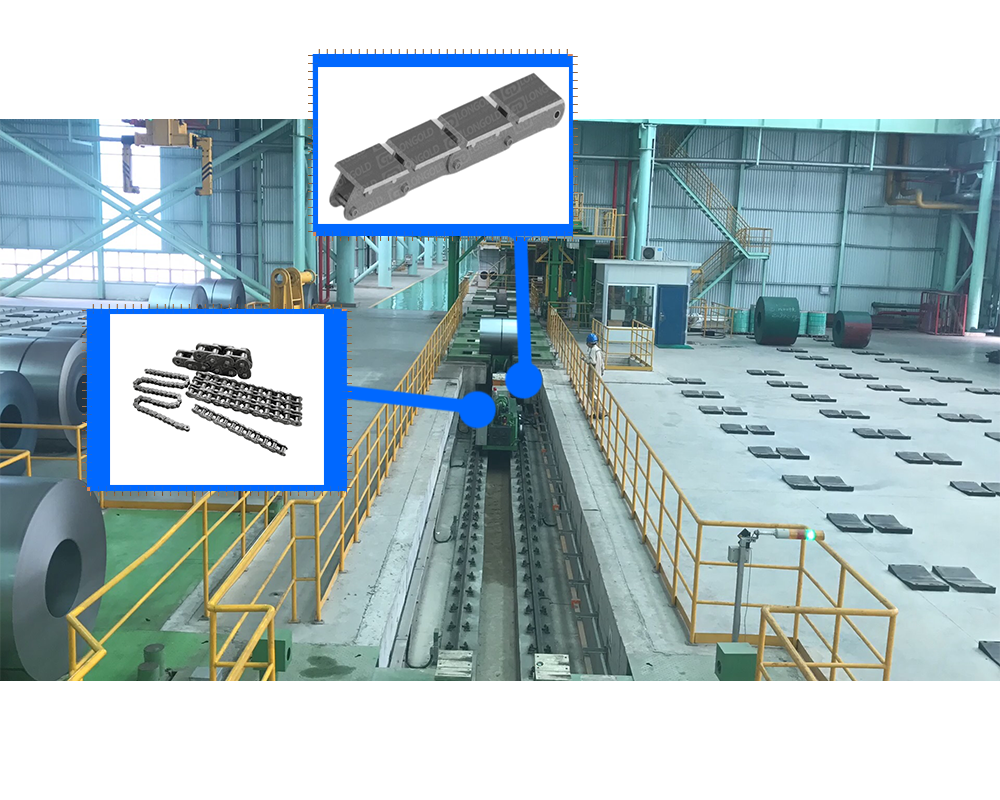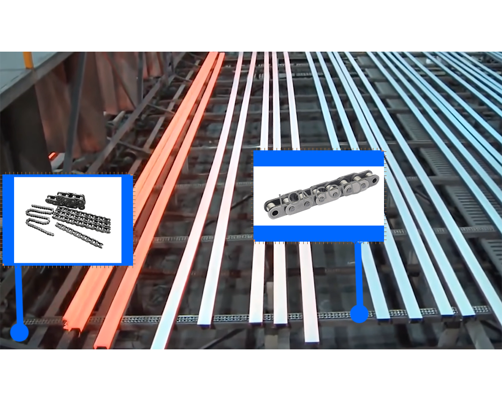 鋼鐵是現(xiàn)代工業(yè)的基礎(chǔ)材料,廣泛應(yīng)用于建筑、機械、汽車、航空航天、能源等領(lǐng)域。鋼鐵冶金行業(yè)的發(fā)展水平直接影響著一個國家的工業(yè)化進(jìn)程和經(jīng)濟(jì)實力。鋼鐵冶金行業(yè)是一個龐大而復(fù)雜的產(chǎn)業(yè),它涉及到從鐵礦石開采到鋼鐵產(chǎn)品制造的多個環(huán)節(jié)。隆德生產(chǎn)的鋼鐵冶金用的鏈條的鏈板設(shè)計得厚實且堅固,可以承受沉重的鋼鐵物料,同時鏈板之間采用高強度銷軸鏈接,鏈條整體能夠承受高溫線材的熱量。