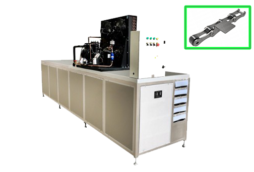 糖果和巧克力都具有遇熱則融遇冷則凝的特性,因此為加快糖果和巧克力的凝固成型,因此需要對其進(jìn)行冷凍處理。為保證冷凍的速率,糖果·巧克力隧道式速凍機(jī)便應(yīng)運(yùn)而生,通過搭配耐低溫的速凍隧道鏈條將已經(jīng)注入模具的糖果·巧克力運(yùn)輸?shù)剿淼朗剿賰鰴C(jī)內(nèi),依靠低溫使糖果或者巧克力快速凝聚成型。 |