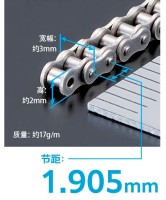 1.905mm的鏈節(jié)距是目前世界上最小的微型滾子鏈。 高度、整體寬幅和質(zhì)量完全不同于以往產(chǎn)品,可在超乎想象的超小空間實(shí)現(xiàn)動(dòng)力傳遞。