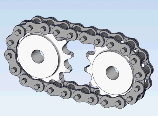 原理:通過(guò)鏈條與鏈輪的嚙合傳遞動(dòng)力,利用鏈節(jié)與鏈輪齒的機(jī)械咬合實(shí)現(xiàn)傳動(dòng)。