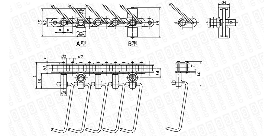 附件是為了將夾具安裝在鏈條上的零部件。可根據(jù)客戶要求設(shè)定安裝間隔。