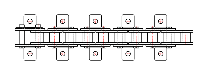 附件可配裝在每一個(gè)鏈節(jié)以上的鏈節(jié)間隔,如每偶數(shù)鏈節(jié)安裝,為了容易進(jìn)行保養(yǎng),安裝在外鏈節(jié)。