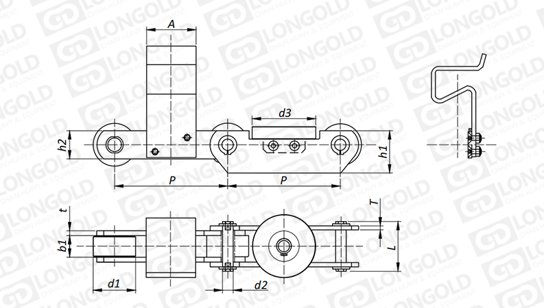 附件是為了將夾具安裝在鏈條上的零部件??筛鶕?jù)客戶要求設(shè)定安裝間隔。