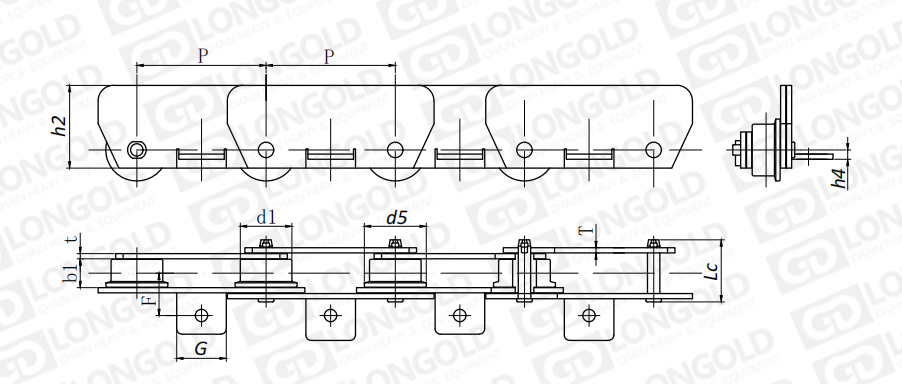 附件可配裝在每一個(gè)鏈節(jié)以上的鏈節(jié)間隔,如每偶數(shù)鏈節(jié)安裝,為了容易進(jìn)行保養(yǎng),安裝在外鏈節(jié)。