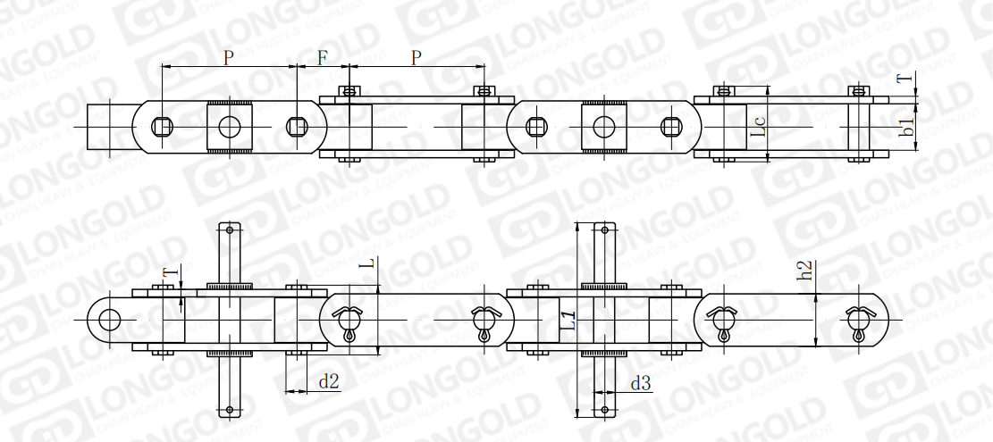 附件是為了將夾具安裝在鏈條上的零部件??筛鶕?jù)客戶要求設(shè)定安裝間隔。
