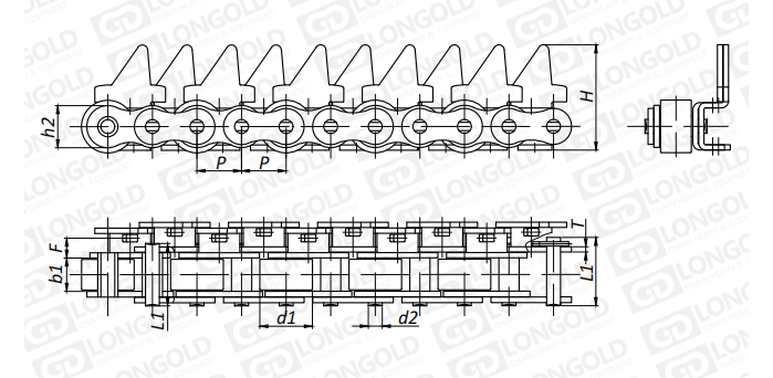 此類型鏈條是在標準短節(jié)距精密滾子鏈作為基鏈的基礎上加裝特殊附件的鏈條。