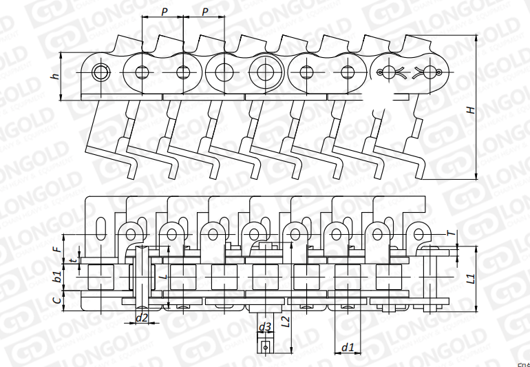 此類型鏈條是在標(biāo)準(zhǔn)短節(jié)距精密滾子鏈作為基鏈的基礎(chǔ)上加裝特殊附件的鏈條。