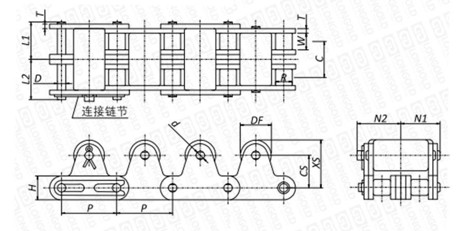 2.LD2060-2以上的尺寸,由于中心距C尺寸與標(biāo)準(zhǔn)A系列鏈條適用鏈輪不同,需定制特殊鏈輪。