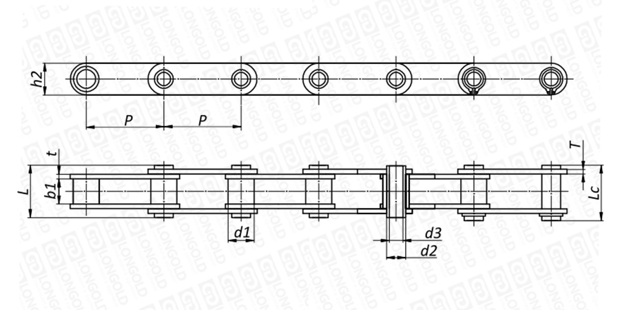 附件負荷均等加以兩側(cè)鏈板。在強度方面具有優(yōu)勢,鏈條運行時不易引起蛇行。