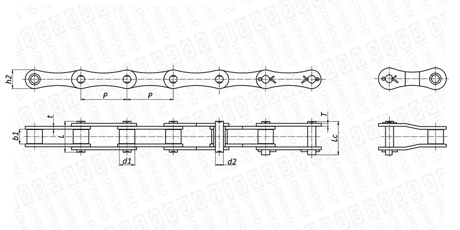 鏈條節(jié)距為標(biāo)準(zhǔn)傳動用滾子鏈的2倍,鏈板為8字板,這樣可以提高鏈條的整體強(qiáng)度和承載能力。