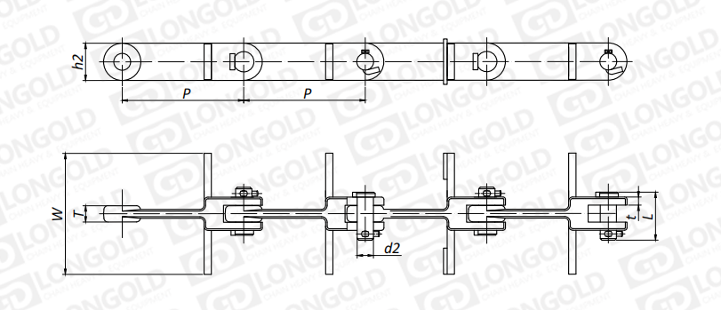 附件是為了將夾具安裝在鏈條上的零部件。可根據(jù)客戶要求設(shè)定安裝間隔。