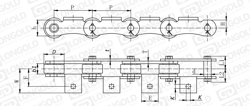 附件可配裝在每一個鏈節(jié)以上的鏈節(jié)間隔,如每偶數(shù)鏈節(jié)安裝,為了容易進行保養(yǎng),安裝在外鏈節(jié)。