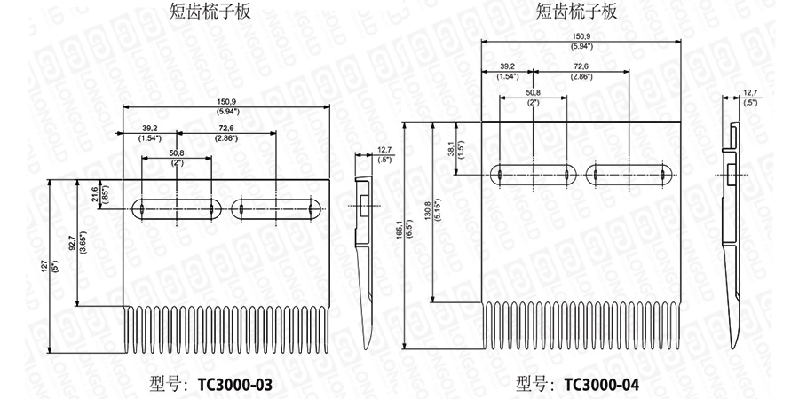 在選擇梳子板時,需要考慮安裝尺寸,如有需要,請咨詢隆德技術(shù)人員。