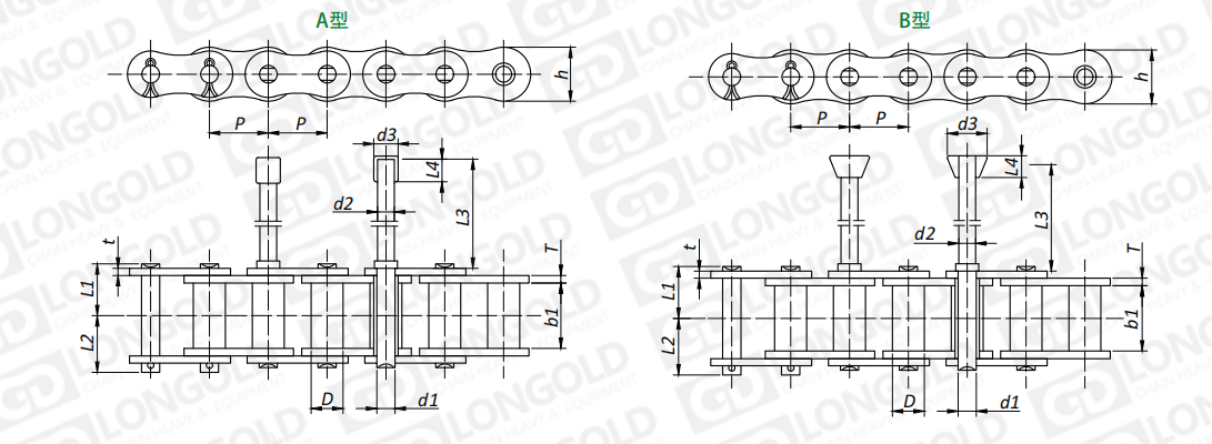 附件是為了將夾具安裝在鏈條上的零部件。可根據(jù)客戶要求設(shè)定安裝間隔。