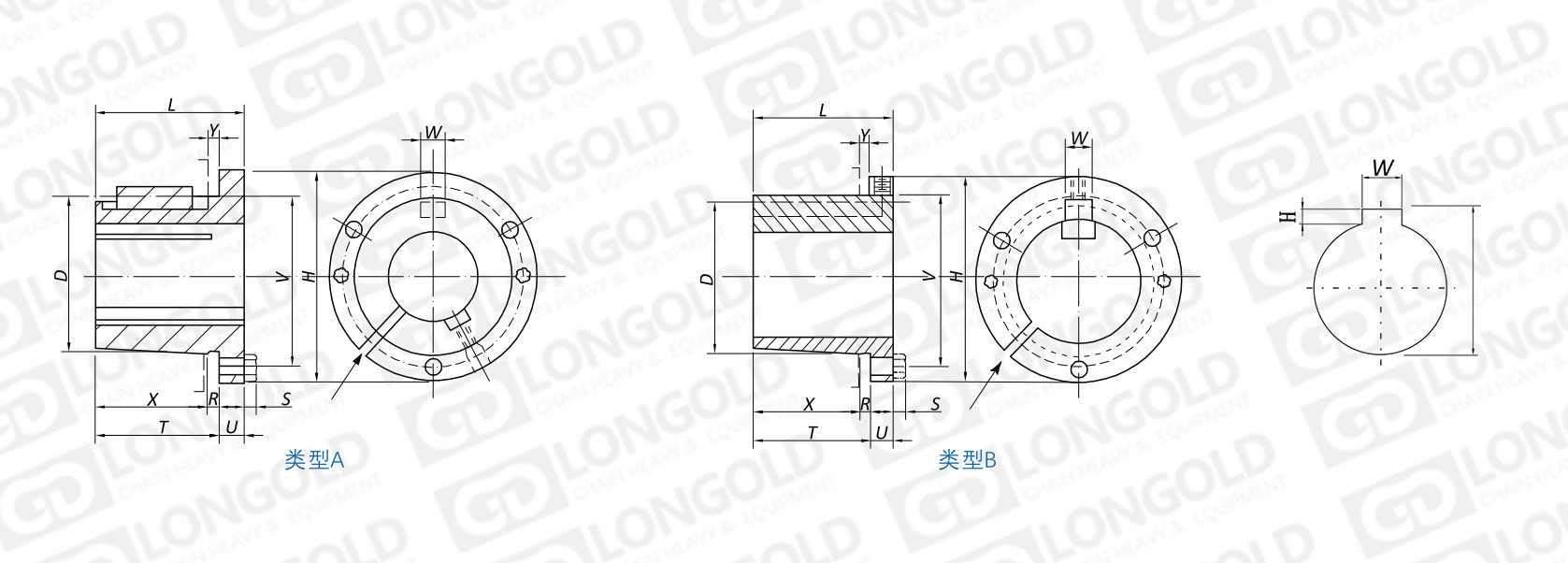 分為A、B兩種類型,可根據(jù)需要與有鍵或鍵槽的軸或輪轂配合使用。