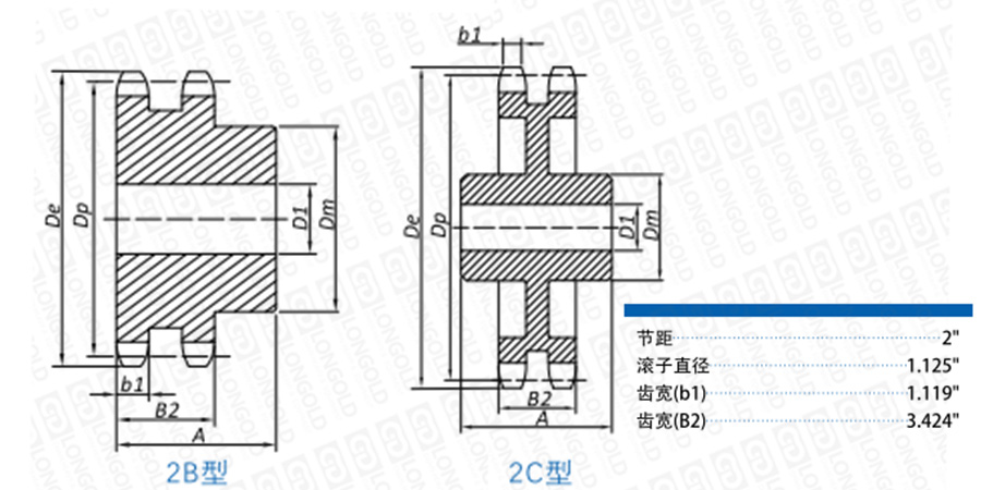 ■2B型鏈輪尺寸表