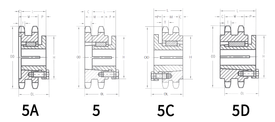 STL 錐孔鏈輪的中心孔為錐形,錐度為 4°±15′,配合錐套使用時(shí)可通過軸向壓緊實(shí)現(xiàn)無鍵連接,確保傳動(dòng)穩(wěn)定性和安裝精度。