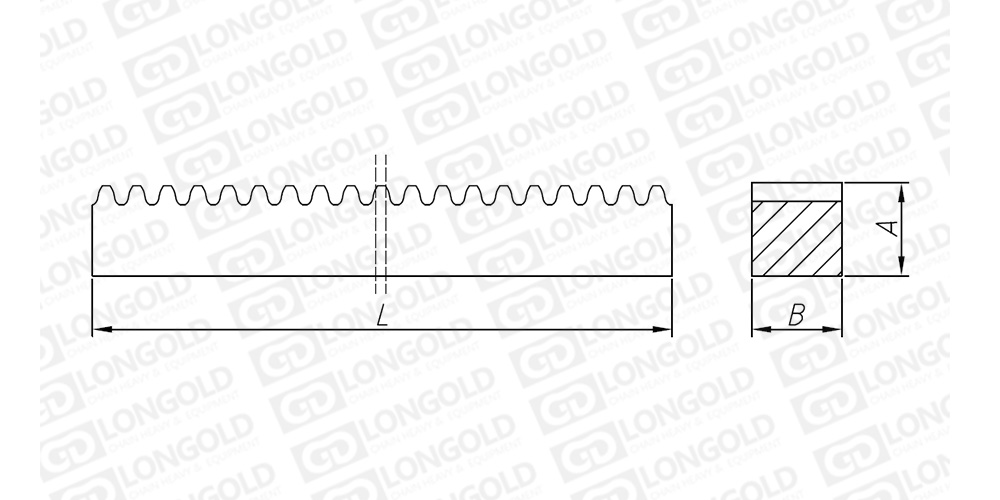 1.為了可以更順利的安裝拼接使用齒條,標(biāo)準(zhǔn)齒條的兩端端面將會(huì)加工為半齒齒底,以方便跟下一支齒條的端面半齒齒底連接成一個(gè)全齒,齒條通過續(xù)接來限延使用。