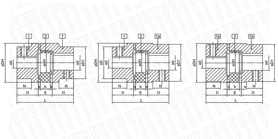注:1.GE聯(lián)軸器廠標產品出廠狀態(tài)為第一種本體型式工藝孔,膠墊硬度SHA92。