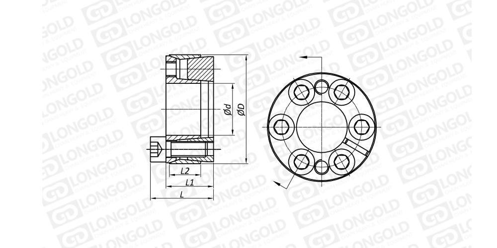 拆卸脹緊聯(lián)結(jié)套時(shí),先將全部螺釘松開并取下,然后將拆卸螺釘擰入相應(yīng)的拆卸螺紋孔內(nèi)(裝有鍍黃鋅螺釘?shù)穆菁y孔),