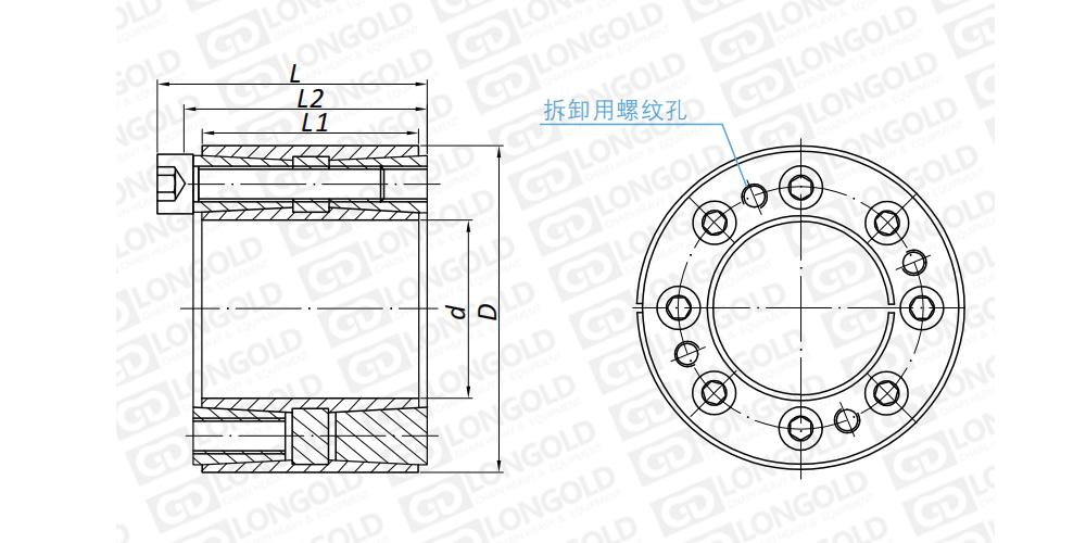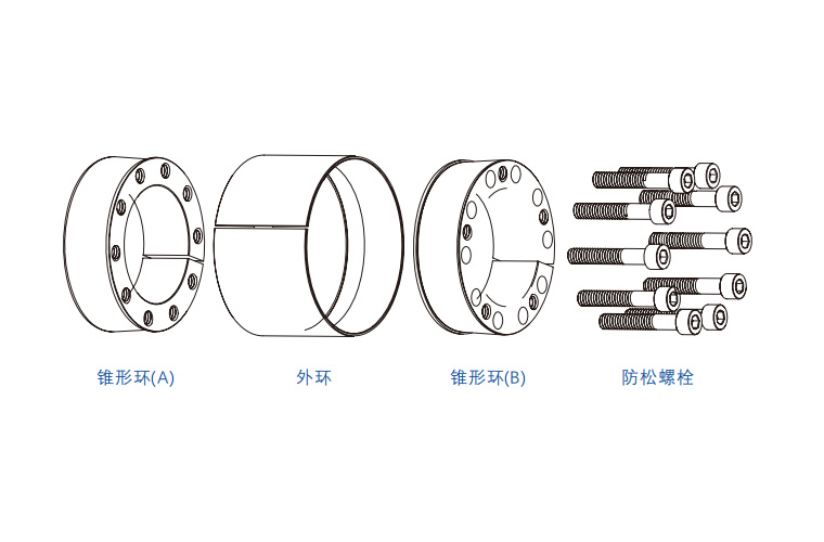 上圖為D型脹緊套的結(jié)構(gòu)圖。