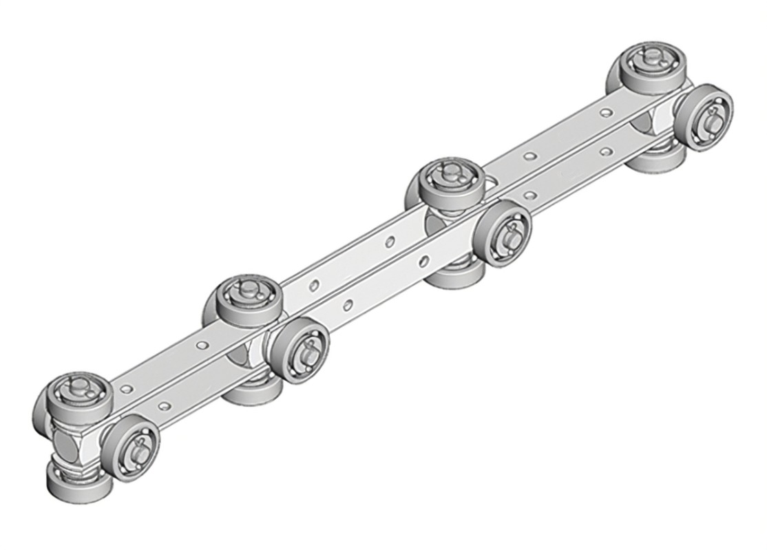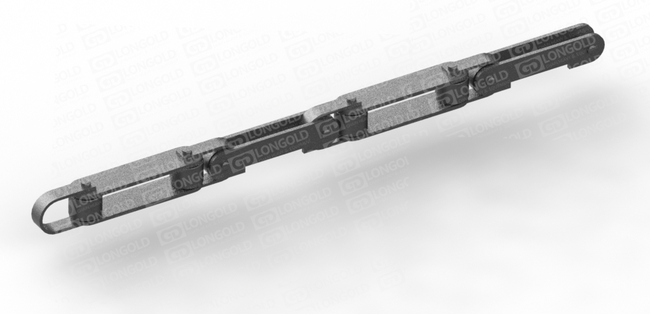雙鉸接輸送鏈條設(shè)計(jì)用于能夠在空間范圍內(nèi)沿彎曲封閉軌道平穩(wěn)運(yùn)行的輸送系統(tǒng),常見于輕型封閉軌懸掛輸送機(jī)。它的結(jié)構(gòu)允許在多個(gè)方向上靈活移動,適用于復(fù)雜的輸送路線。