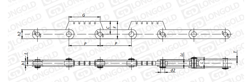 對于不同尺寸、重量和形狀的鋼鐵物料,可通過使用不同節(jié)距的鏈條或改變附件的安裝形式來滿足運輸需求,詳情請咨詢隆德技術人員。