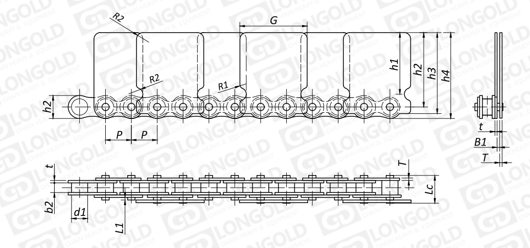 附件可配裝在每一個鏈節(jié)以上的鏈節(jié)間隔,如每偶數(shù)鏈節(jié)安裝,為了容易進行保養(yǎng),安裝在外鏈節(jié)。