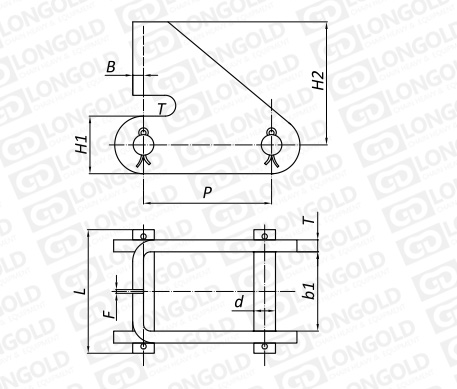 D型推頭呈直角三角形,與A型推頭幾乎相同,但安裝D型推頭的鏈條本體的銷軸直徑要小于安裝A型推頭的鏈條本體的銷軸直徑。