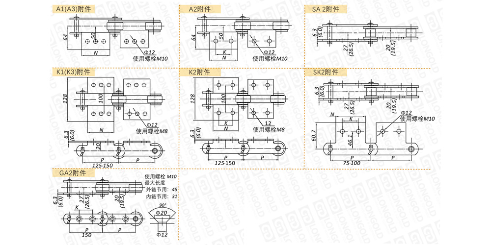 ■鏈條本體結(jié)構(gòu)及附見種類詳見如上圖
