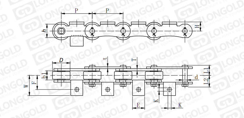附件是為了將夾具安裝在鏈條上的零部件??筛鶕?jù)客戶要求設(shè)定安裝間隔。