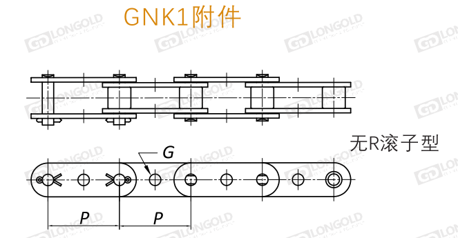 上圖為S滾子鏈雙倍節(jié)距鏈帶附件圖,帶GNK1附件雙倍節(jié)距鏈無R滾子型。