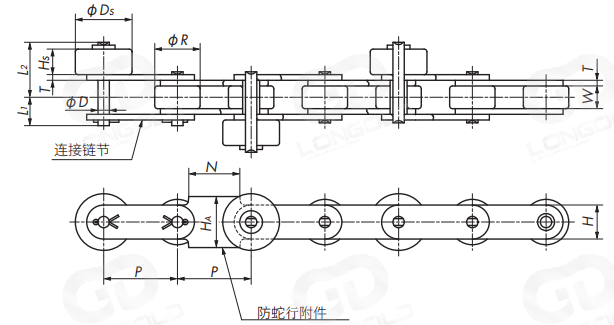 (6)防蛇行附件安裝間隔:4L=4個鏈節(jié)