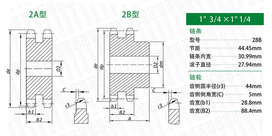 雙排B型鏈輪型號