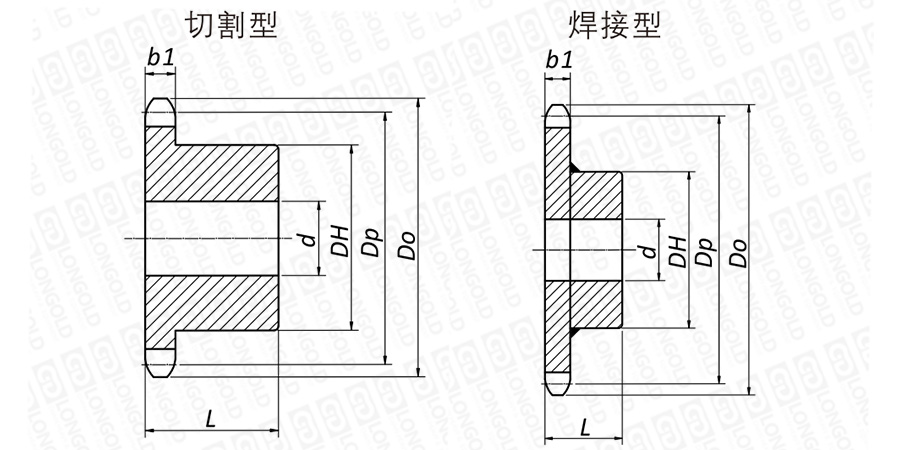 齒部硬化:需要提高齒端強(qiáng)度和磨損壽命的場(chǎng)合,推薦使用齒端硬化鏈輪。各個(gè)尺寸小齒數(shù)的機(jī)械用碳素鋼輪轂切削規(guī)格,齒端部均實(shí)施硬化處理。