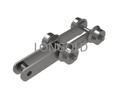 帶側(cè)置滾輪的汽車汽車生產(chǎn)線鏈條,側(cè)置滾輪能減少鏈條運(yùn)動(dòng)時(shí)的摩擦阻力,使鏈條能夠更加順暢地在軌道上運(yùn)行。