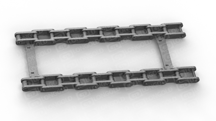 雙排鋪路機鏈條設(shè)計用于雙排鋪路機,它們在兩鏈條之間裝配刮板,以提高物料的輸送效率和鏈條的耐用性。
