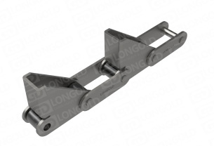 此種鏈條廣泛應(yīng)用于木材加工和運(yùn)輸領(lǐng)域,頂部安裝有安裝板,呈倒“v”型,方便運(yùn)輸木材。