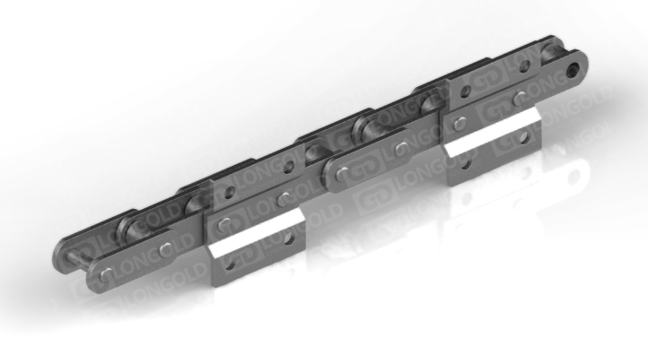 帶有 BGA4 附件,即鏈條一側(cè)的鏈板上下各有一個折彎板,折彎板各帶兩個孔,但與SGA4附件有所不同,BGA4附件的附板形狀為梯形。