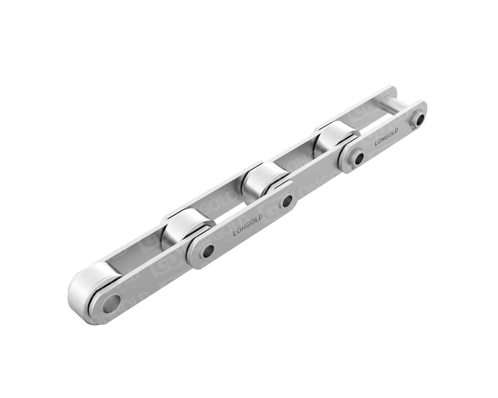 以輸送鏈為基本,安裝加寬的鏈板和摩擦阻力較小的大滾子,可以直接在鏈板上裝載重物的鏈條。采用相當(dāng)于SUS304不銹鋼材質(zhì)具有較高耐腐蝕性。