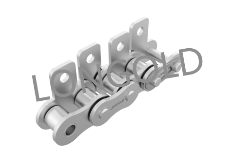 通過各種材料的組合,適合于水中、酸性及堿性等腐蝕性環(huán)境中或低溫、高溫的特殊環(huán)境里使用,且鏈條的單側(cè)鏈板延伸作為鏈條附板,且附板上帶有一個孔的A系列小型輸送鏈。材質(zhì)使用相當(dāng)于SUS304規(guī)格的不銹鋼材料。